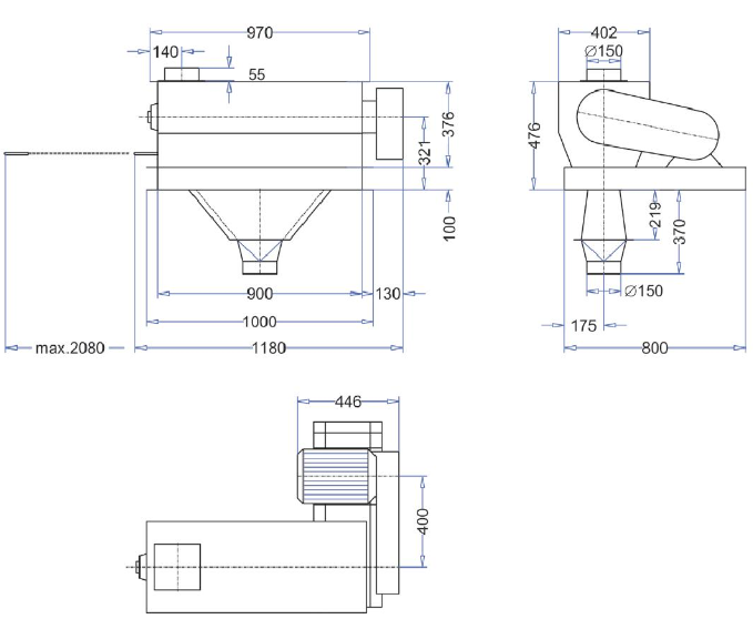 Інтенсивність обробки сировини можна відрегулювати за допомогою установки числа обертів (дві сходинки) і регульованою шиберной засувки.